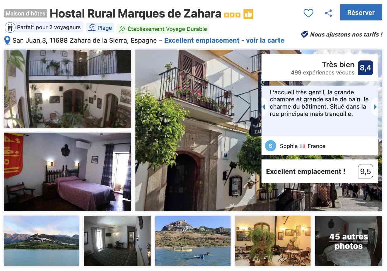 Pour y dormir, je vous conseille de prévoir votre hébergement à l’hôtel Rural Marques de Zahara qui vous propose de dormir dans une décoration authentique andalouse avec des prestations de grande qualité pour un tarif à partir de 50 euros la nuit.
