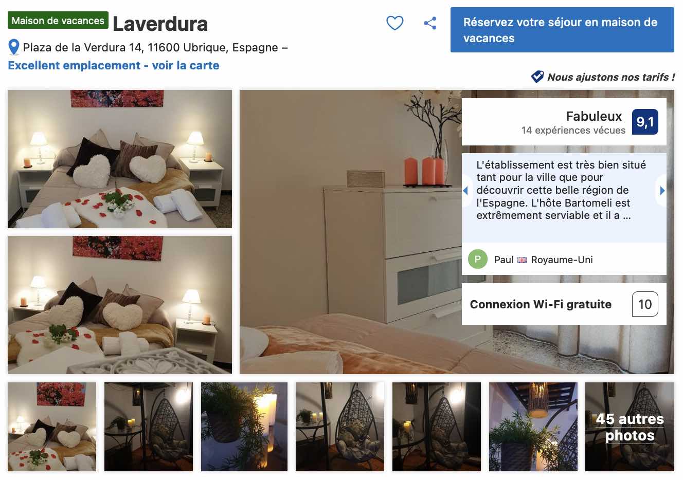 Pour dormir à Ubrique, je vous conseille de louer la maison de vacances Laverdura qui met à votre disposition plus de 100m2 d’espaces pour moins de 75 euros la nuit pour deux personnes dans une ambiance moderne et typiquement andalouse à la fois, en plein cœur de village.