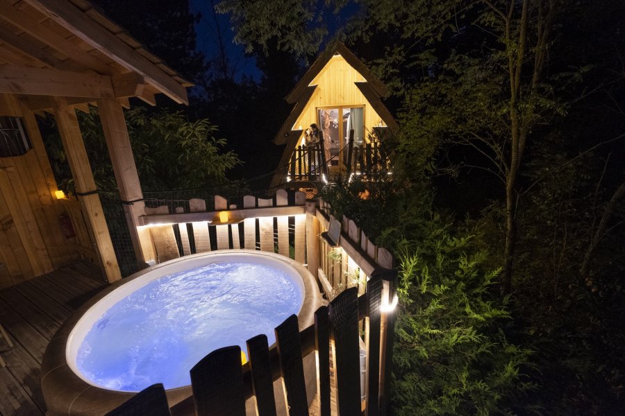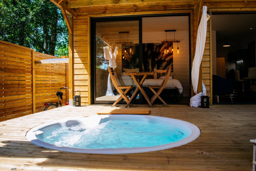 Juste à côté de votre hébergement, vous trouverez un spa privatif pour buller au beau milieu de la nature ou sous les étoiles.