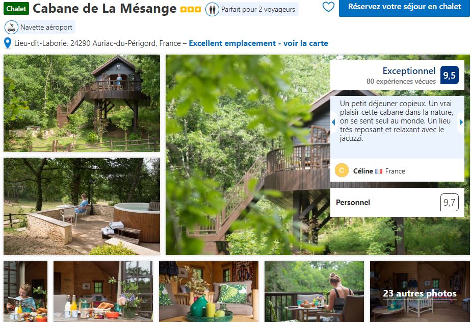 Si vous cherchez un logement plus atypique vous avez la Cabane de la Mésange réunit selon moi tous les critères pour passer de merveilleux moments en couple. Ce que j’aime vraiment dans ce havre de verdure, c’est l’impression d’être « seuls au monde », au milieu d’une nature bucolique.