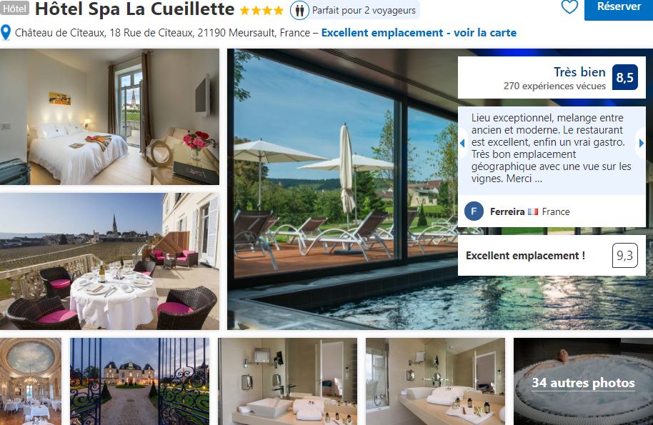 Si vous êtes plutôt hôtel de charme, je vous conseille de dormir à l’Hôtel Spa La Cueillette. Situé dans le Château de Cîteaux, datant du XIXe siècle, l’établissement est entouré par les vignes de Meursault, à 5 minutes de route de Beaune.