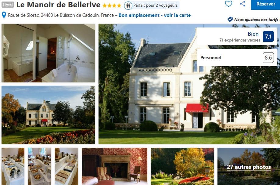 Vous avez aussi le Hotel Le Manoir De Bellerive et le restaurant qui se trouve à 2 minutes en voiture dans l’Auberge l’Espérance SARL, un délice pour les amoureux culinaires ! Vous êtes aussi à deux pas du petit village Limeuil, adorable !