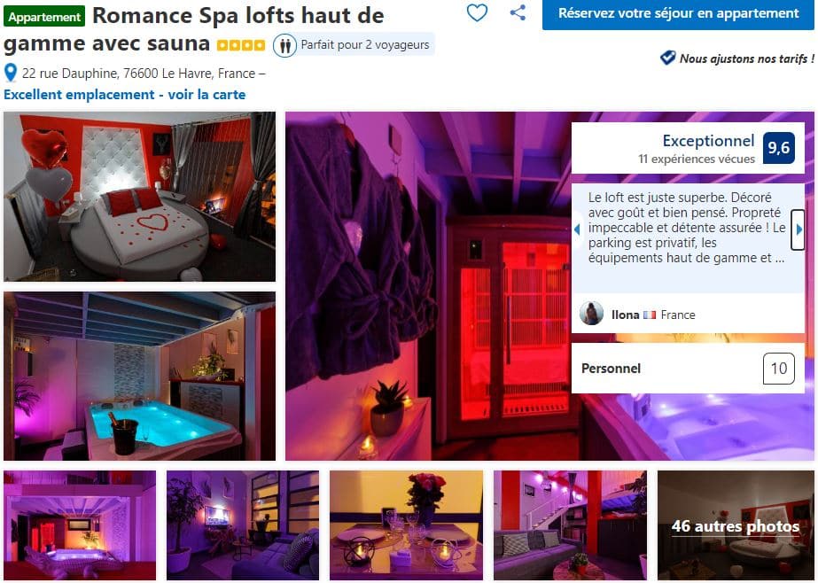 Au Havre, vous avez cet appartement « Romance Spa avec Sauna » qui est en plus idéalemen situé en plein coeur du Havre.